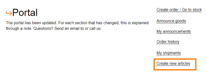 You can create an article in our customer portal if you have a new article which is not registered in our sytem yet.