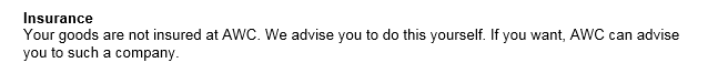 The goods that are stored in our warehouse are not insured by us. In the offer we have agreed our rates and terms on do you find the following: