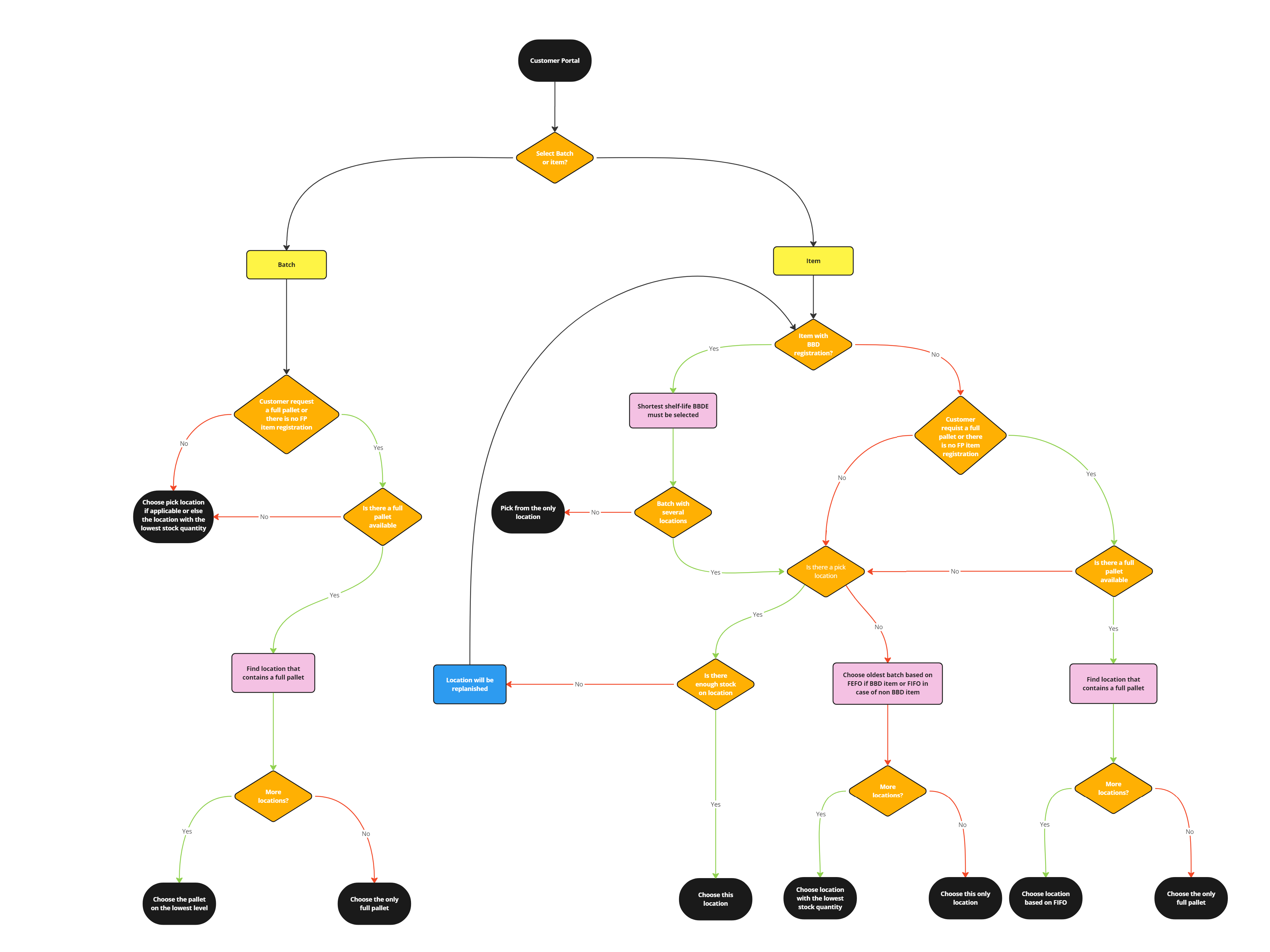 - If the article does not have a fixed pick location the oldest batch/lot will be picked based on FIFO.
