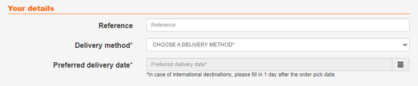 In case of an international destination, please select the day you want the order to be PICKED instead of the delivery date. You can request in the comments the day you want it to be delivered.
