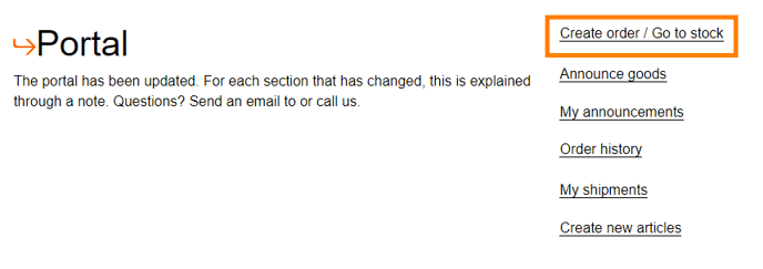 Log in on our customer portal with your credentials and push on the button create order/go to stock