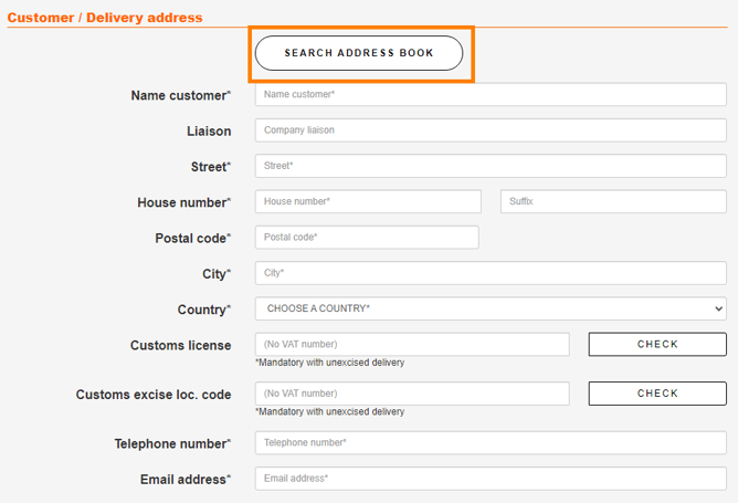 You can use the button ‘Search adress book’ if you will sent an order to a customer where you’ve already sent some orders to.