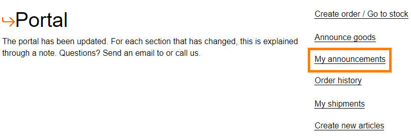 You will go to a new screen after you have clicked on this button. In the new screen you will see an overview of all your announcements. In the row 'Status' you can find the status of your inbound. The different statuses and their meaning are: